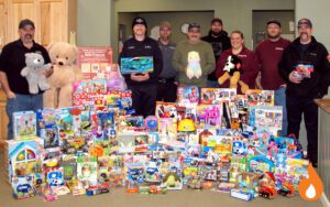 LYNDONVILLE: Our Lyndonville office joined forces with the St. Johnsbury Fire Department in support of their “Northeast Kingdom Santa Fund.” Thank you to the incredibly generous individuals who spent time shopping then donated these special items, some even donating 20 to 30 toys at a time – and we all quickly fell in love with that huge teddy bear!
